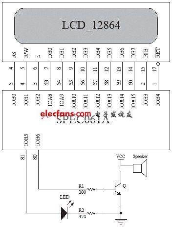 圖2 液晶顯示模塊和聲光報(bào)警電路原理圖