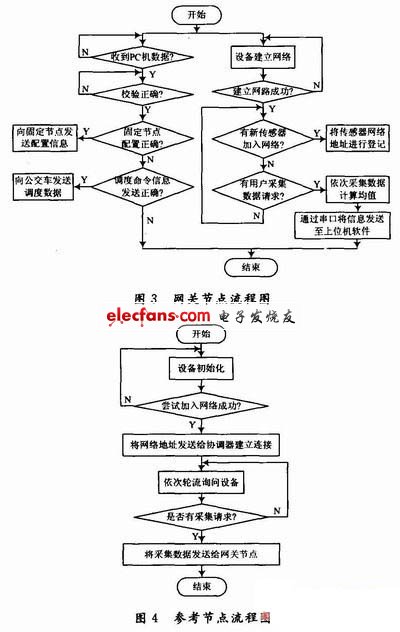 該系統(tǒng)通過安裝在各公交車上的盲節(jié)點、安裝在各站臺和路燈等固定設施上的參考節(jié)點和安裝在交通信號燈上的ZigBee網(wǎng)關將數(shù)據(jù)傳送給監(jiān)控中心。網(wǎng)關初始化后,首先選擇合適的信道建立網(wǎng)絡,監(jiān)聽該信道,等待其他ZigBee設備發(fā)出的連接請求。當接收到某設備的連接請求,經(jīng)認證確認是合法設備后,便發(fā)出允許連接的命令,建立連接。連接建立后,網(wǎng)關節(jié)點便獲得了該設備的標識號(標識號代表該公交車),并將該標識號儲存在自己的登記表中,然后檢測是否有用戶采集數(shù)據(jù)請求,如果有,則根據(jù)登記表中的信息依次采集數(shù)據(jù),并根據(jù)RSSI算法計算平均值,最后通過串口向上位機軟件發(fā)出“某車在何時進站”的信息。當公交車駛離站臺后,使公交車與網(wǎng)關斷開連接,從登記表中刪除這個標識號,同時向監(jiān)控中心發(fā)送信息“某車已駛離站臺”。如果遇到堵車等特殊情況,公交司機可以通過車輛上的專用按鈕發(fā)送信號,網(wǎng)關可以接受反饋的數(shù)據(jù),并傳輸給上位機軟件。