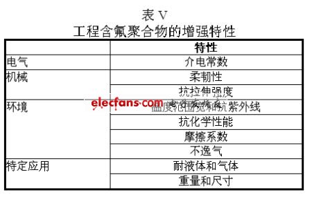現(xiàn)已開發(fā)了專門技術對聚四氟乙烯進行工程處理,使其更能應對環(huán)境和化學等方面的挑戰(zhàn)(表V)。用于絕緣導體的電介質材料對插損、電纜尺寸和柔韌性均有重要影響。電介質耗損越小,電纜所表現(xiàn)出的插損就越小。標準含氟聚合物的介電耗損為 2.1。為了減小電纜的尺寸,聚四氟乙烯的介電常數(shù)可以被設計為1.3。與聚四氟乙烯的標準結構相比,把電介質耐電壓提高2.5倍時,在頻率為10 GHz 時的耗損因素為 0.00015。按照這種屬性,用1/2000 英寸(50微米)厚的聚四氟乙烯層進行絕緣的導體就能承載1000 伏的電壓。另外一種經過工程處理的聚四氟乙烯可具有半導體的電氣特性,并可以用于提高電纜屏蔽效能。在耐磨損和抗擊穿性能方面,經過工程處理的聚四氟乙烯的抗拉伸強度比常規(guī)聚四氟乙烯強50倍,而且能夠承受從低溫到300°C的變化。
