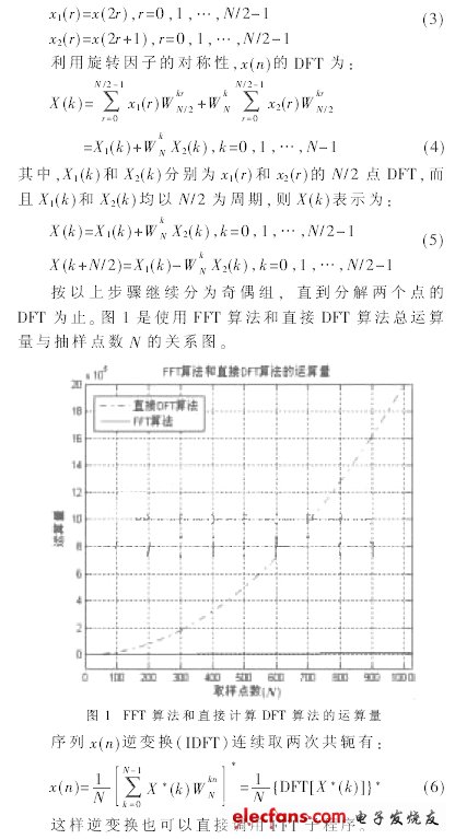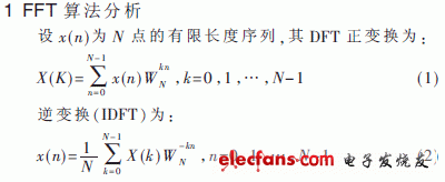 在數(shù)字信號(hào)處理中,離散傅里葉變換(DFT)是常用的變換方法,它在各種數(shù)字信號(hào)處理系統(tǒng)中扮演著重要的角色??焖俑道锶~變換(FFT)[1-2]是離散傅里葉變換的快速算法,它是根據(jù)離散傅里葉變換的奇、偶、虛、實(shí)等特性,對(duì)離散傅里葉變換的算法進(jìn)行改進(jìn)獲得的,兩者都是為了將信號(hào)變換到頻域并進(jìn)行相應(yīng)的頻譜分析。對(duì)于實(shí)時(shí)性要求很強(qiáng)的信號(hào)處理來說,運(yùn)算速度對(duì)整個(gè)處理的影響是顯而易見的。因?yàn)镕FT擁有很高的運(yùn)算能力,使其在無(wú)線通信和數(shù)字通信、高速圖像處理、匹配濾波等領(lǐng)域得到極為廣泛的應(yīng)用。