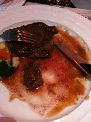我們住的酒店在觀前街的把角兒,離最繁華的地方有2條街的距離,拖著疲憊的身體被LD強(qiáng)迫步行到商業(yè)區(qū)(蘇州打車超級困難)。雖然人多店多,但還真不知道吃點(diǎn)什么,原本想好去得月樓和松鶴樓吃杭州菜,但一看那人烏央烏央的就放棄了。最后拿iPhone的大眾點(diǎn)評,根據(jù)GPS定位信息查找周邊的餐飲信息,找到了一家“德州牛扒”,這回我以體力透支為由,拉著LD去吃了頓她不愛吃的牛扒,最后2人吃了3份16oz的牛扒才花了150多塊錢,還反了40塊錢代金券,超值!哈哈。