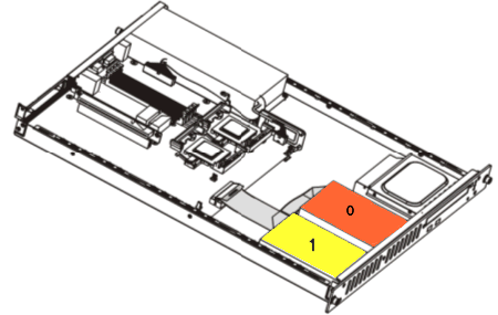 - 識(shí)別用于 ATA 硬盤(pán)驅(qū)動(dòng)器安裝的硬盤(pán)驅(qū)動(dòng)器托盤(pán)。 從服務(wù)器的正面查看時(shí),服務(wù)器中的 ATA 硬盤(pán)驅(qū)動(dòng)器從右到左顯示為設(shè)備 Device 0 或 Device 1。