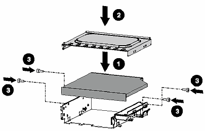 1 -在硬盤(pán)驅(qū)動(dòng)器托盤(pán)上對(duì)齊 ATA 硬盤(pán)驅(qū)動(dòng)器。