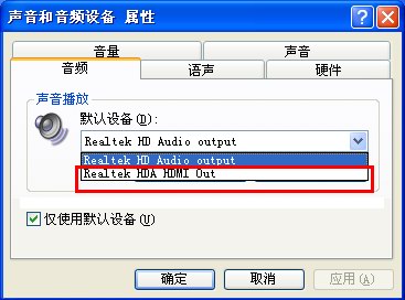 如果是XP,可以在控制面板里面的聲音和音頻設(shè)備屬性中把HDMI Output設(shè)置為默認(rèn)設(shè)備。