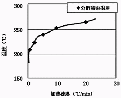 圖6 有機(jī)外殼分解結(jié)束溫度與加熱溫度的關(guān)系