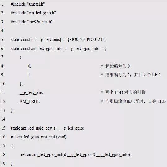 程序清單7.18 實(shí)例初始化函數(shù)范例程序(am_hwconf_miniport_led.c)