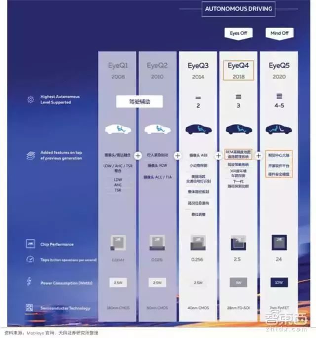 英偉達(dá)的競爭對(duì)手,也就是被英特爾以每股 63.54 美元價(jià)格收購的 Mobileye。天風(fēng)證券指出,Mobileye的機(jī)器視覺算法將與英特爾的芯片、數(shù)據(jù)中心、AI、傳感器融合,以及地圖服務(wù)等方面產(chǎn)生強(qiáng)大的協(xié)同合作效應(yīng),聯(lián)手打造“軟硬兼施”的全新無人駕駛供應(yīng)商。目前,英特爾-Mobileye聯(lián)盟擁有全行業(yè)最廣泛的車企合作關(guān)系,且商業(yè)路徑十分明晰:從 ADAS 出發(fā),逐步完善功能模塊,提高自動(dòng)化程度,進(jìn)化到EyeQ5(預(yù)計(jì)2020年推出,算力15萬億次)將會(huì)成為一個(gè)開源性、定制化、可升級(jí)的標(biāo)準(zhǔn)解決方案,打造成為無人駕駛界的Android。