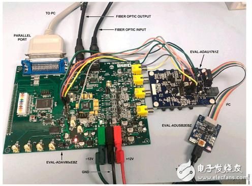 圖2.連接ADAV801/ADAV803評估板和ADAU1761評估板的測試設(shè)置