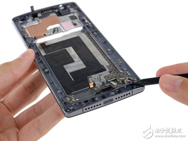 在拆下來的塑料隔板上并沒有多少內(nèi)容值得介紹,ifixit決定向著一加手機(jī)2的核心區(qū)域進(jìn)攻!