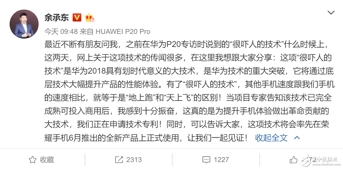 這項(xiàng)技術(shù)究竟是什么呢?就在今天上午,華為消費(fèi)者 BG 總裁余承東在自己的微博上進(jìn)行了“官宣”。