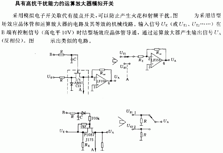 模擬開關(guān)電路即對模擬信號進行“通/斷”(ON/OFF)控制的電路,現(xiàn)在一般由晶體管(二極管、雙極型三極管、場效應管等)作為開關(guān)器件