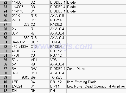 在電燈點(diǎn)亮,即三極管BG導(dǎo)通時(shí),發(fā)光二極管D4有電流流過(guò)而點(diǎn)亮,它是放在菲涅耳透鏡后面,從外面可以看到紅光,一方面比較美觀,另一方面,可以方便地叛定當(dāng)燈失靈不亮?xí)r是燈泡壞了,還是電路有問(wèn)題。如果LED點(diǎn)亮而燈泡不亮,可以斷定感應(yīng)部分正常,很有可能是燈泡壞了。如果換了燈泡還不好,那就是可控硅壞了。
