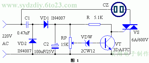 17520 過壓保護器二例:有些電子設(shè)備對電壓很敏感,稍有過壓就會燒壞或不能正工作,為了保護這些設(shè)備,可使用下圖的過壓保護器。