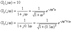 解:該開(kāi)環(huán)系統(tǒng)由三個(gè)典型環(huán)節(jié)串聯(lián)組成:一個(gè)比例環(huán)節(jié) 、兩個(gè)一階慣性環(huán)節(jié) 和 。這三個(gè)環(huán)節(jié)的幅、相頻率特性分別為: