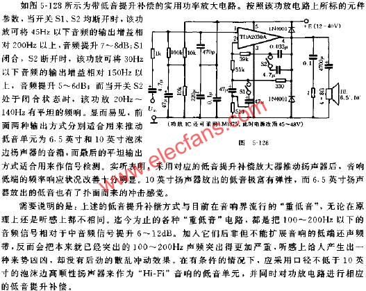 迄今為止,幾乎所有的高保真功率放大器都被人們?cè)O(shè)計(jì)成為具有平坦的頻率響應(yīng)特性曲線。然而,由于揚(yáng)聲器的聲壓頻率,特性曲線并不是平坦的直線,采用上述頻率響應(yīng)特性曲線完全平坦的功率放大器來(lái)推動(dòng)揚(yáng)聲器,并不能獲得良好的還聲效果。以常用的10英寸、6.5英寸泡沫邊高保真低音揚(yáng)聲器來(lái)說(shuō),它們的下限共振頻率約為26HZ與45HZ,Q值一般為0.6與0.4,相對(duì)于中間頻帶的輸出靈敏度,10英寸揚(yáng)聲器在26HZ時(shí)輸出聲壓下降了大約9DB;6.5英寸揚(yáng)聲器在45HZ時(shí)輸出聲壓下降了大約15DB。如果采用頻率響應(yīng)曲線平坦的功率放大器來(lái)推動(dòng)它們工作,就會(huì)明顯的感到還聲裝置的低音不足,換句話說(shuō),要想使具有平坦的還聲特性曲線,用來(lái)推動(dòng)揚(yáng)聲器工作的功率放大器,應(yīng)該具有與所有的揚(yáng)聲器的聲壓頻率特性曲線對(duì)稱互補(bǔ)的輸出電壓頻率響應(yīng)特性曲線。