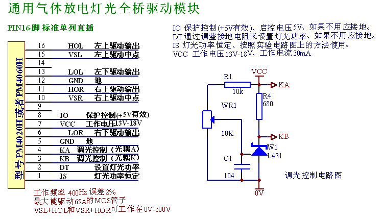 采用PM4020H設(shè)計(jì)的(HID)或高壓鈉燈電子鎮(zhèn)流器: