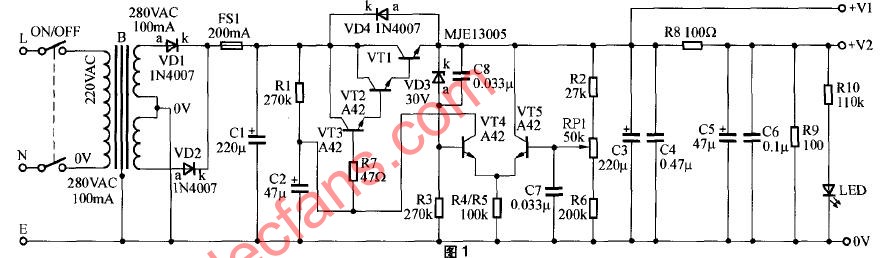 1401一種雙輸出穩(wěn)壓電源電路