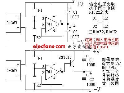 電源轉(zhuǎn)換雙電源 TDA2030是一種高效率的運(yùn)算放大器。利用它的互補(bǔ)輸出級(jí),可以將單極性電源一分為二,