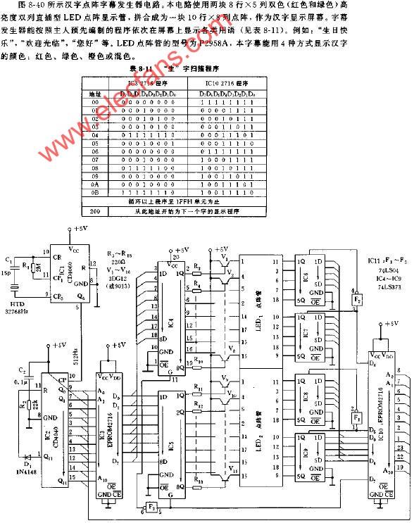 電子發(fā)燒友網(wǎng)>電子技術(shù)應(yīng)用>電路原理圖>彩燈電路圖>漢字點(diǎn)陣字幕發(fā)生器電路圖