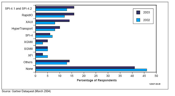 -2003年SPI-4.1和SPI-4.2使用的增加意味著在通信線路卡上標(biāo)準(zhǔn)接口應(yīng)用增長(zhǎng),使得專用和基于專用標(biāo)準(zhǔn)電路功能的結(jié)合更加靈活。