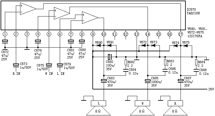 TA8218AH是東芝公司生產(chǎn)的三聲道音頻功率放大器可用于彩電的左右聲道及重低音三路音頻信號的放大處理具有低噪聲高輸