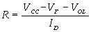 以上兩式中,ID——LED的電流,VF——LED的正向壓降,VOH和VOL為門電路的輸出高、低電平電壓,常取典型值。