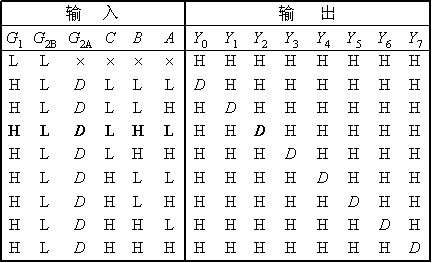 上圖為常用的集成譯碼器74138,其功能表為: