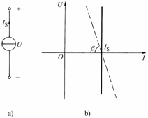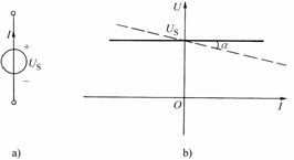 其伏安特性表明:無論流過理想電壓源的電流I大小、方向如何,理想電壓源兩端的電壓始終是