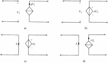 晶體管、運算放大器、變壓器等實際元器件可用含受控源的電路模型表征。例如圖1-2-11