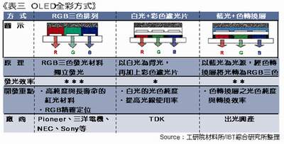 顯示器全彩色是檢驗顯示器是否在市場上具有競爭力的重要標志,因此許多全彩色化技術(shù)也應(yīng)用到了OLED 顯示器上,按面板的類型通常有下面三
