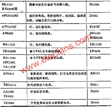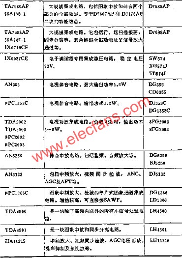 表18-37 列出了彩色電視機常用集成電路的功能及型號