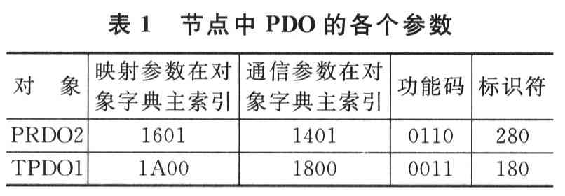 ??? 對象字典的內(nèi)容除了包括CANopen協(xié)議規(guī)定的必需項外,還包括調(diào)用的各功能模塊和參數(shù)設(shè)定項。它的正確配置和使用,是保證整個CANopen網(wǎng)絡(luò)正常運行的核心,是節(jié)點實現(xiàn)其預定功能的必要保證。對象字典的組建采用C語言在頭文件中編寫,通過Struct(結(jié)構(gòu))語句實現(xiàn)對象字典內(nèi)容的尋址。對象字典的規(guī)劃賦值設(shè)計按照CANopen協(xié)議規(guī)定的格式完成,每個節(jié)點的對象字典都具有相同的結(jié)構(gòu),但具體內(nèi)容要根據(jù)不同的設(shè)備而定義,包含了描述這個設(shè)備和它網(wǎng)絡(luò)的所有參數(shù)。對象字典的操作是CANopen協(xié)議軟件的核心,通過對象字典實現(xiàn)網(wǎng)絡(luò)間參數(shù)的映射從而完成各種數(shù)據(jù)的處理,需要編寫對象字典解碼子函數(shù)、讀對象字典子函數(shù)和寫對象字典子函數(shù)。下面以溫度調(diào)節(jié)節(jié)點為例介紹對象字典的創(chuàng)建、賦值和具體操作。表1顯示了此節(jié)點中PDO的各個參數(shù)。