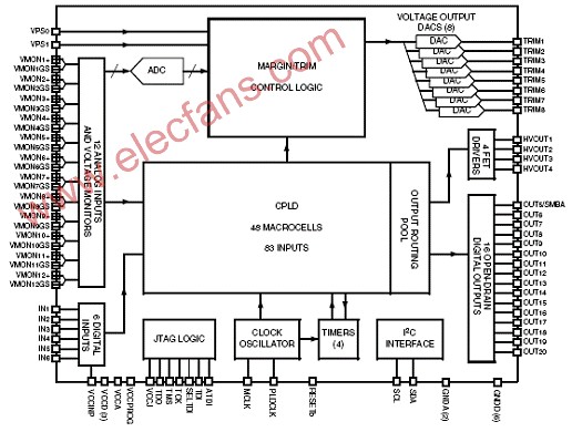圖2.ispPAC-POWR1220AT8應(yīng)用方框圖