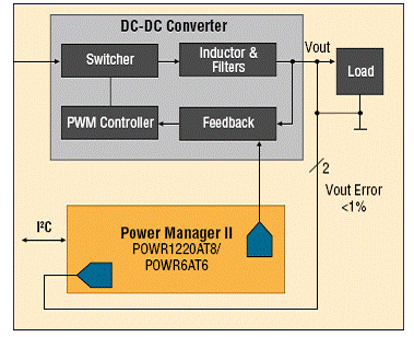 圖3.ispPAC-POWR1220AT8提高DC/DC轉(zhuǎn)換器精度的應(yīng)用方框圖