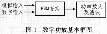 數(shù)字功放由于其效率高、易與數(shù)字音源對接等優(yōu)點(diǎn)而在現(xiàn)實(shí)生活中具有越來越廣泛的應(yīng)用。它主要包含兩部分,圖1為數(shù)字功放的基本框圖。其中PWM變換大致有兩種,一是模擬PWM,即將輸入的模擬信號或數(shù)字信號經(jīng)D/A后與三角波進(jìn)行比較,這種變換必須要有頻率上百kHz、線性度好、滿幅的三角波,而且還要有高速模擬比較器,否則將影響PWM波形在解調(diào)后的波形,這些都將增加成本和設(shè)計(jì)復(fù)雜度(使用集成D類功放或D類控制芯片另當(dāng)別論)。二是數(shù)字式PWM,即將輸入數(shù)字信號或模擬信號經(jīng)A/D后與計(jì)數(shù)器相比較,即用計(jì)數(shù)的方法代替三角波,從而避免了三角波非線性所引起的失真。同傳統(tǒng)的模擬方式相比,數(shù)字方式具有設(shè)計(jì)簡單,效率更高,抗干擾性更強(qiáng)等優(yōu)點(diǎn)。而Atmega8單片機(jī)中的定時(shí)器1可以工作在PWM模式,它只要將其AD中的值移到PWM的輸出比較寄存器中即可完成PWM調(diào)制,實(shí)現(xiàn)起來相當(dāng)簡便。