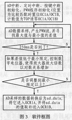 本系統(tǒng)軟件由AD中斷服務(wù)程序、定時(shí)中斷服務(wù)程序、PWM程序、按鍵中斷服務(wù)程序組成。