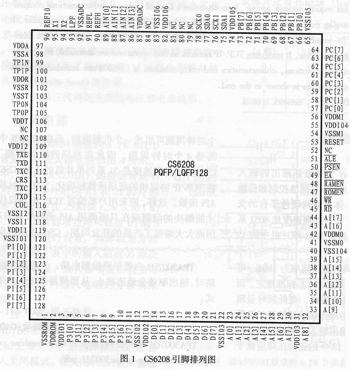 嵌入式網(wǎng)絡(luò)控制器CS6208有什么引腳功能?