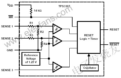 TPS3307-18 和 TPS3307-33 設(shè)計(jì)用于監(jiān)控三個(gè)獨(dú)立