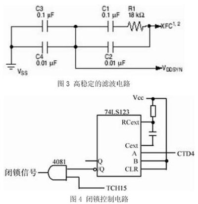由于系統(tǒng)采用外部參考頻率源,為了提高系統(tǒng)頻率的穩(wěn)定性和可靠性,所以需要在MC68HC376的XFC腳上接入濾波電路。該電路應盡可能降低XFC腳的泄露電流,以提高時鐘的穩(wěn)定性和內部鎖相環(huán)的性能。圖3所示為高穩(wěn)定的濾波電路。