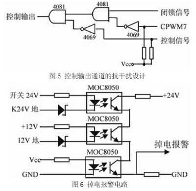 (2) 控制信號輸出部分的抗干擾設計