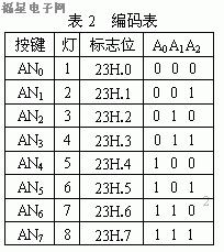 用程序模擬編碼器,通過(guò)單片機(jī)的一位I/O口,用軟件實(shí)現(xiàn)其功能,可以大大簡(jiǎn)化單片機(jī)的輸入/輸出接口電路的設(shè)計(jì);并可充分利用編碼器的編址能力,編碼容量較易達(dá)到最大值。
