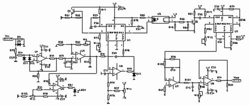 模擬量光隔接口電路的設(shè)計,除需考慮上述打火現(xiàn)象外,還要求其跟蹤精確度、響應(yīng)速度等要滿足加速器的設(shè)計指標(biāo),為此,在設(shè)計中采用了高精度電壓-頻率轉(zhuǎn)換芯片LM331,接口電路原理圖如圖3所示。其中U1、U6組成電壓頻率轉(zhuǎn)換電路,根據(jù)輸入電壓的大小,產(chǎn)生不同頻率的脈沖輸出,饋入光電轉(zhuǎn)換器(U2)進行隔離傳輸,U3構(gòu)成的頻率電壓轉(zhuǎn)換器將接收到的頻率脈沖還原成電壓信號;U4、U5組成具有一定放大能力的輸入緩沖電路,U9用于輸入超量程指示,U7、U8為輸出緩沖放大器。如何提高跟蹤精度和加快響應(yīng)速度,是該接口電路設(shè)計的關(guān)鍵。除了選擇低溫度系數(shù)的定時元件外,RC參數(shù)的取值也較為重要,可根據(jù)所需要的電壓范圍,初步確定電路的工作頻率,再結(jié)合集成電路的參數(shù)選擇合適的電阻、電容值。另外, LM331用作頻率電壓轉(zhuǎn)換器時,應(yīng)注意其輸入脈沖寬度應(yīng)盡可能小些。除此之外,合理的元件布局也是提高電路性能的一個因素,在保證連線盡可能短的情況下,PCB板上電源和地線(0V線)的走向也是不可忽視的環(huán)節(jié),較為妥當(dāng)?shù)淖龇ㄊ敲總€集成電路單元有各自的電流回路,不讓其他控制電路的電流通過自己的“地線”和“電源線”。實驗證明該設(shè)計響應(yīng)時間小于2ms,低于PLC的掃描周期,可以較好地滿足地那米加速器的控制要求。