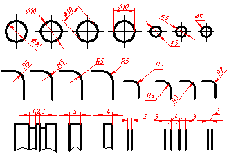 ② 相同直徑的圓孔可采用圖中的標(biāo)注方法,如3×φ9,表示3個(gè)孔直徑為9。