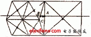 由于加工曲面通過前步的離散化處理已有一系列簡(jiǎn)單的三角平面片組成,故對(duì)平面和曲面的交線求解比較單,只需求該平面和相關(guān)的三角平面片的交線即可。不過,此處必須說明的是,前步的離散化處理由于相鄰的子曲面片細(xì)分層次不一樣可能出現(xiàn)裂縫和折疊現(xiàn)象,見附圖。當(dāng)然這種現(xiàn)象可通過一定的手段進(jìn)行消除,但這將大大降低離散的效率而不為本文所采用。本文將該問題在此處只需稍作處理即可。當(dāng)平面與裂縫處的三角平面片截交時(shí)會(huì)與裂縫之間產(chǎn)生交線,比如附圖中的線段AB,而實(shí)際上AB兩點(diǎn)應(yīng)為曲面的同一點(diǎn),只是由于離散方法的不完善而產(chǎn)生。為了消除這一現(xiàn)象,本文采用的方法為在這種情況下,取A、B兩點(diǎn)的中點(diǎn)為C為平面與裂縫處子曲面片的邊界的交點(diǎn)。