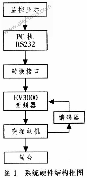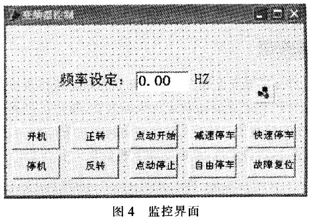 4 為了實(shí)現(xiàn)對電機(jī)的可靠控制,并使其操作簡單,易于控制,運(yùn)行狀態(tài)易于觀察,提高設(shè)備自動(dòng)化程度,設(shè)計(jì)出一種基于EV3000變頻器,靈活實(shí)用的變頻電機(jī)調(diào)速監(jiān)控系統(tǒng)。該系統(tǒng)采用艾默生公司生產(chǎn)的EV3000