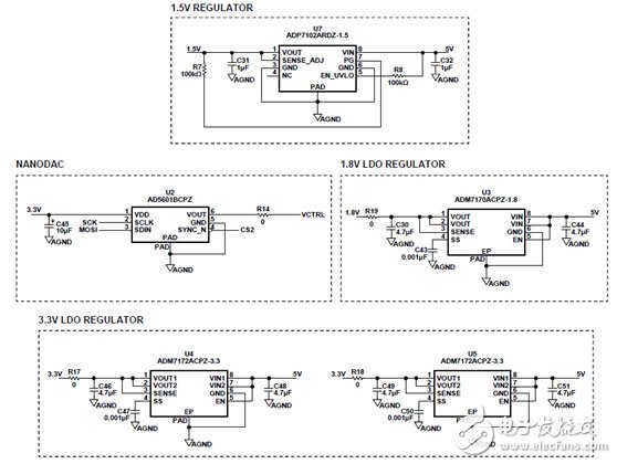 圖9.評估板ADMV1014-EVALZ電路圖-LDO穩(wěn)壓器連接圖