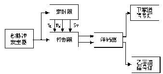 ???(4)甲車道紅燈亮,乙車道黃燈亮。表示甲車道禁止通行,乙車道上位過縣停車線的車輛停止通行,已過停車線的車輛停止通行,已過停車線的車輛繼續(xù)通行。黃燈亮足規(guī)定的時間間隔TY時,控制器發(fā)出狀態(tài)轉換信號ST,系統(tǒng)又轉換到第(1)種工作狀態(tài)。