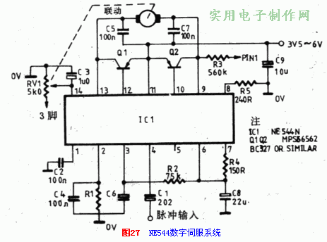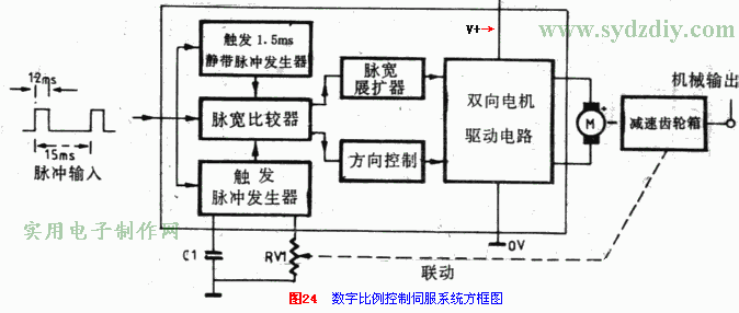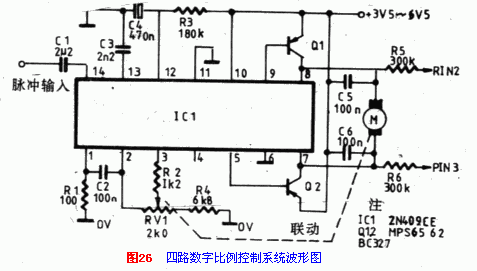 電機(jī)M是用它的輸出脈沖驅(qū)動(dòng)的,脈沖占空比越大,電機(jī)電驅(qū)電流就越小,轉(zhuǎn)速減慢;脈沖占空比越小,電機(jī)電驅(qū)電流就越大,轉(zhuǎn)速加快。