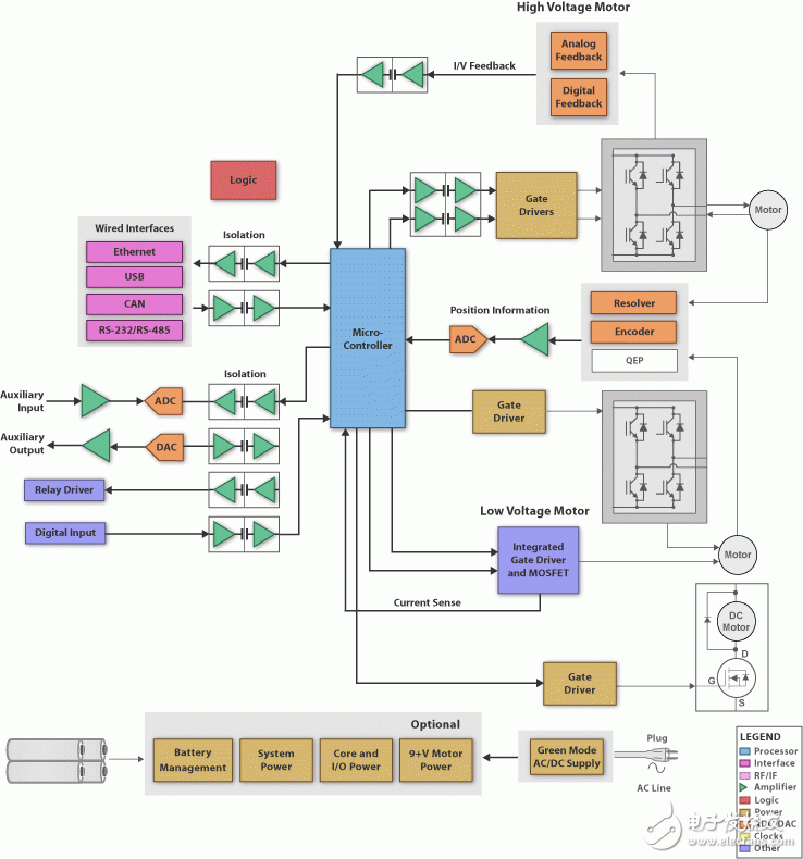 傳統(tǒng)模擬 RS-232/RS-485 接口一直是電機(jī)控制應(yīng)用的常見選擇。展望未來,設(shè)計(jì)人員將在其產(chǎn)品中集成主流接口,如以太網(wǎng)、USB 和 CAN。