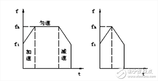 為了充分發(fā)揮電機(jī)的快速性能,通常使電機(jī)在低于啟動頻率下啟動,然后逐 步增加脈沖頻率直到所希望的速度,所選擇的變化速率要保證電機(jī)不發(fā)生失步, 并盡量縮短啟動加速時間。為了保證電機(jī)的定位精度,在停止以前必須使電機(jī)從 最高速度逐步減小脈沖率降到能夠停止的速度(等于或稍大于啟動速度)。因此, 步進(jìn)電機(jī)拖動負(fù)載高速移動一定距離并精確定位時,一般來說都應(yīng)包括“啟動-加 速-高速運(yùn)行(勻速)-減速-停止”五個階段,速度特性通常為梯形,如果移動的距離 很短則為三角形速度特性,如圖 2 所示。